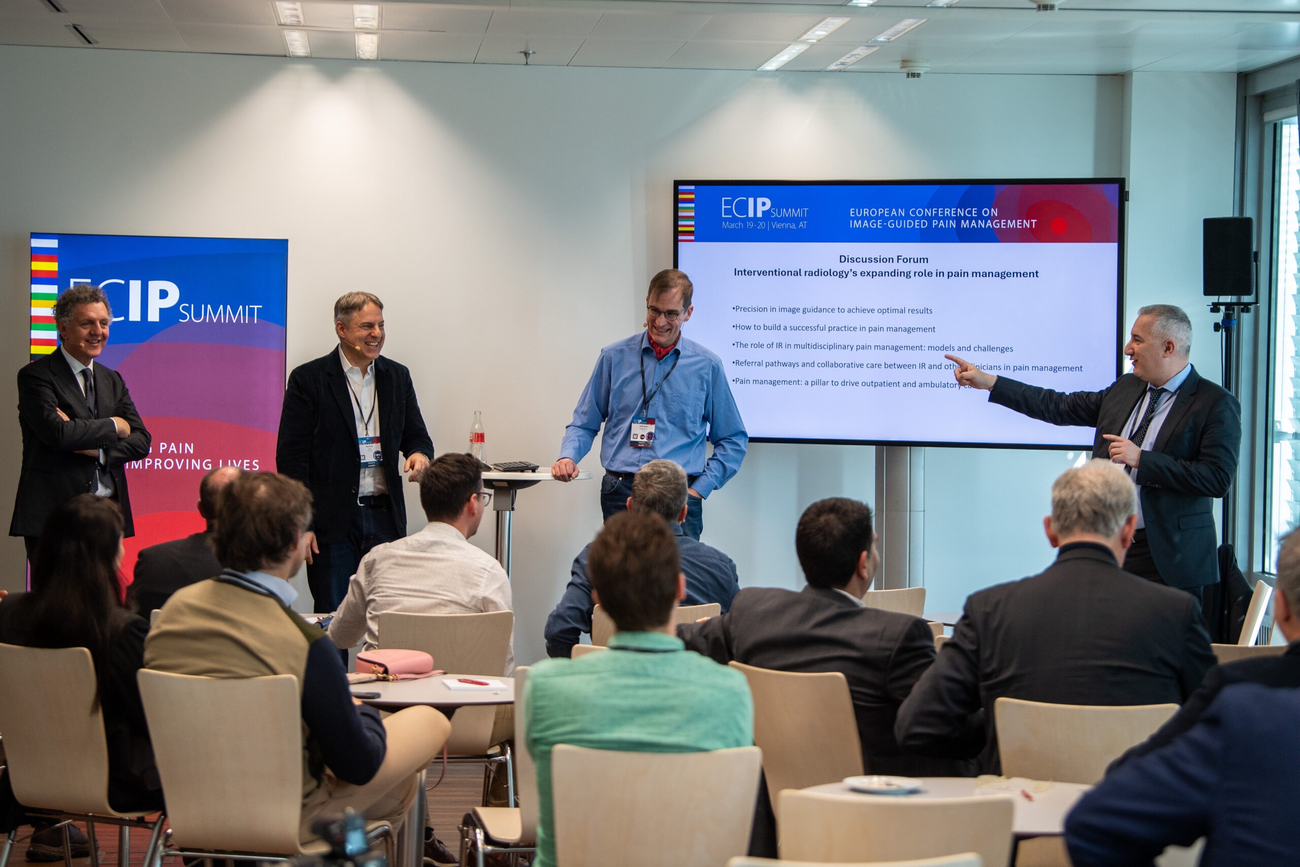 Day two’s programme took a closer look at multidisciplinary collaboration and the practical aspects of offering IR pain procedures. The summit concluded with dedicated discussion fora, which provided valuable opportunities for further exchange in small groups — much needed following the lively Q&A sessions throughout the meeting.
